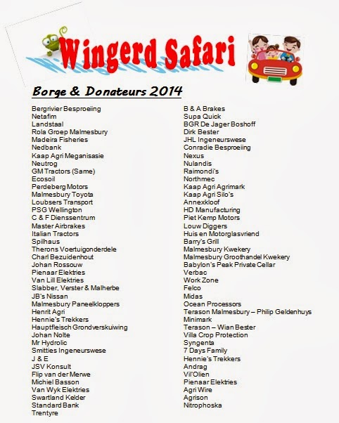 Ons wil van die geleentheid gebruik maak om elke borg baie hartlik te bedank vir die sukses van ons dag en ons hoop julle kry net soveel myle uit die dag soos ons. Volgende jaar sal ons dit weer doen met 'n nuwe venue en roete! Dankie aan Bernice Jooste vir die gebruik van die foto's.